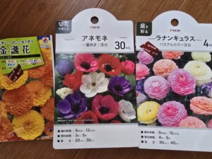 この秋、アネモネ・ラナンキュラス・キンセンカの種をまきました。